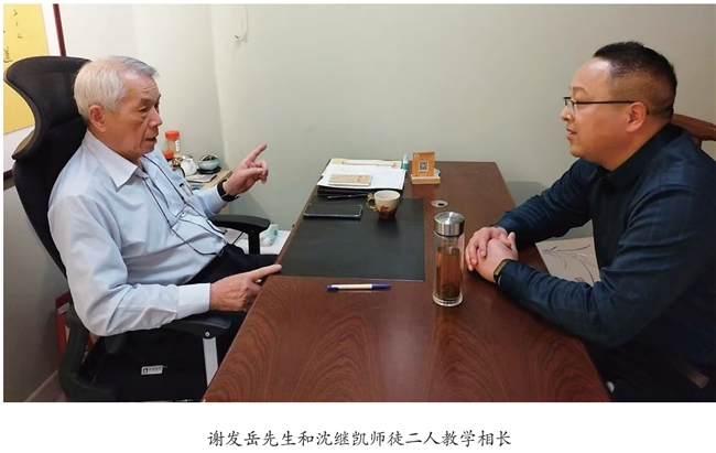 沈继凯的求索之路并未止步于家学。2018年秋,他赴京研学,得遇来自宝岛台湾的“妇科圣手”谢发岳先生,并拜其为师。谢先生年过花甲仍勤学不倦、医术医德皆令人敬仰,其“以德立身、以技立业、以愿弘道”的教诲与促进两岸交流、坚信祖国统一的家国情怀,给了沈继凯坚定的信心支持与精神鼓励。这段跨越海峡的师徒缘,不仅是医术的传授,更是医道精神与文化认同的共鸣,彰显了沈继凯在多元融合中开拓视野、夯实根基的自觉,以及其身为医者所承载的更深远的时代担当。